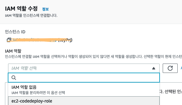 EC2 선택 > 작업 > 보안 > IAM 역할 수정