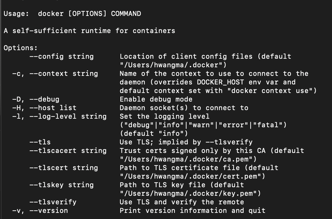 docker command option이 나온다면 제대로 설치된것.