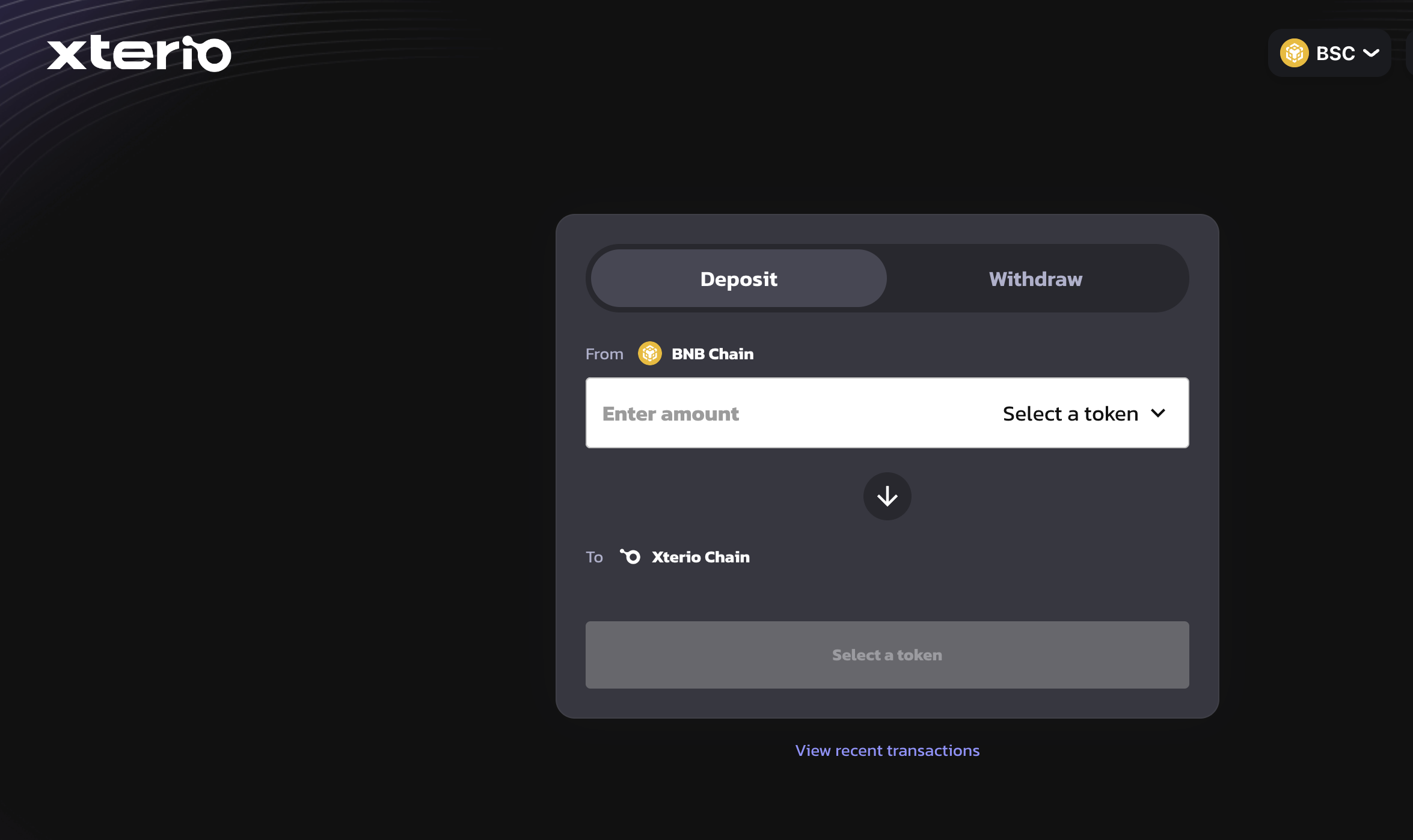BNB네트워크의 bnb를 위 브릿지를 통해 Xterio bnb로 가져와야 한다.