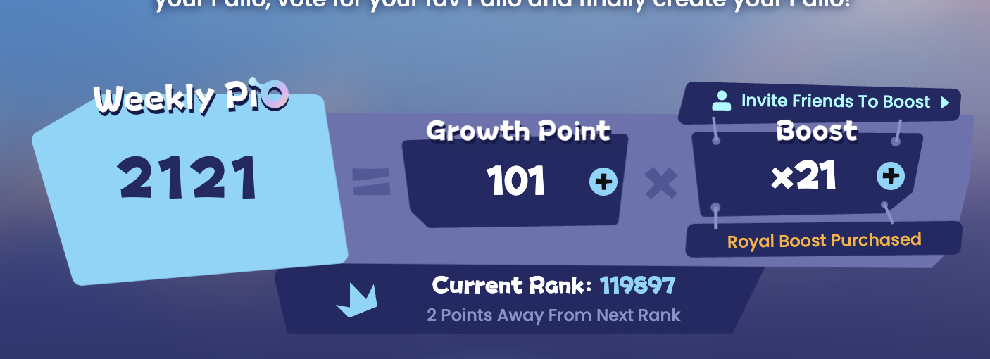 다들 하는 tweeter(X) 리트윗, 좋아요, 레퍼럴 등등 완료하면 포인트가 아니라 투표권을 얻을 수 있는데, 이 투표권은 또 스크롤을 조금 내리면 있는 캐릭터 인기 투표에 사용 할 수 있다.