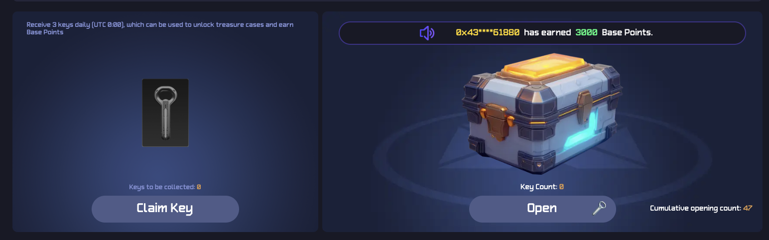 2분쯤 기다리면 key 오른쪽에 박스에 key count가 올라가고 open을 클릭하면 랜덤하게 포인트가 주어진다. - Task Reward