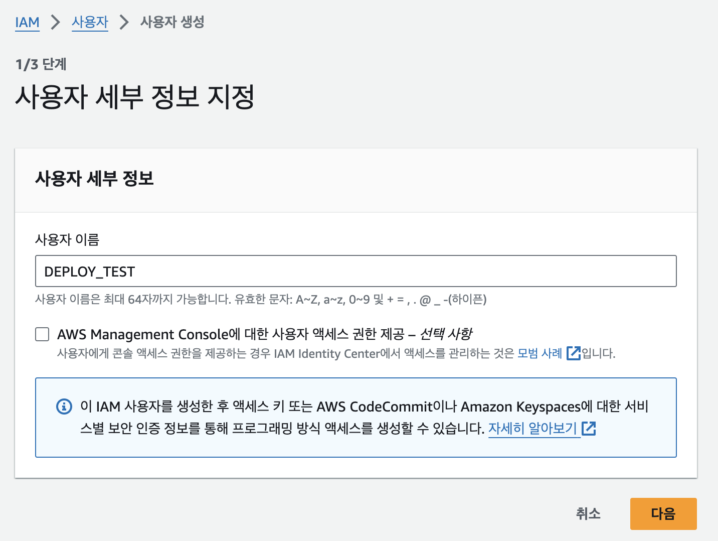 AWS IAM에서 사용자 생성