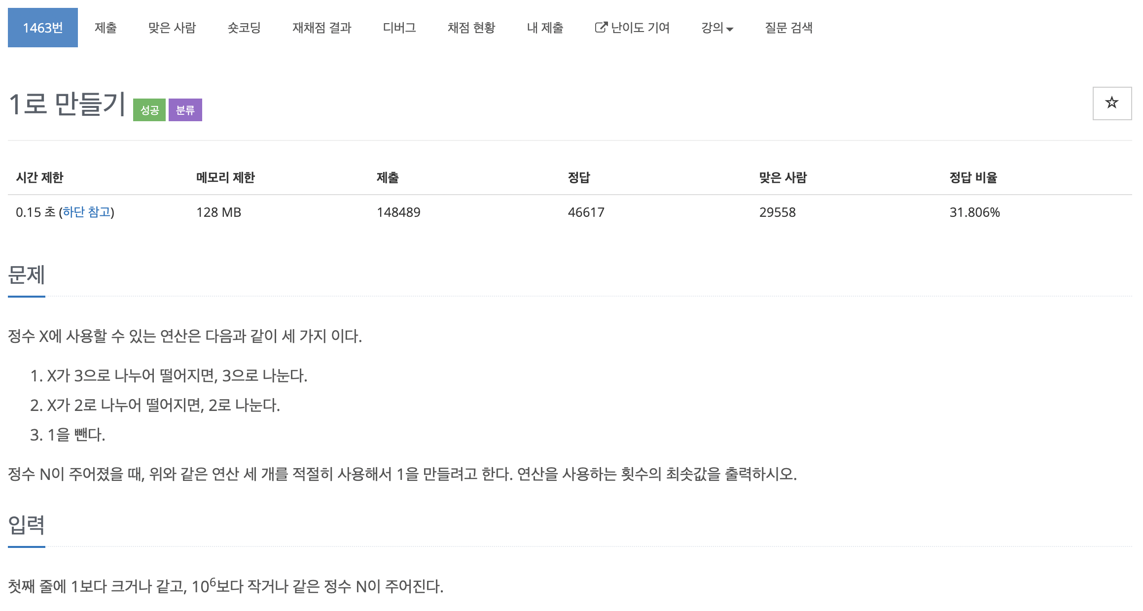 // 18-1 = 17 => 18에서 -1 연산 한번이면 17이 된다. 17에서 1로 가는 최소 연산 개수는 dp[17]에 저장되어있다.