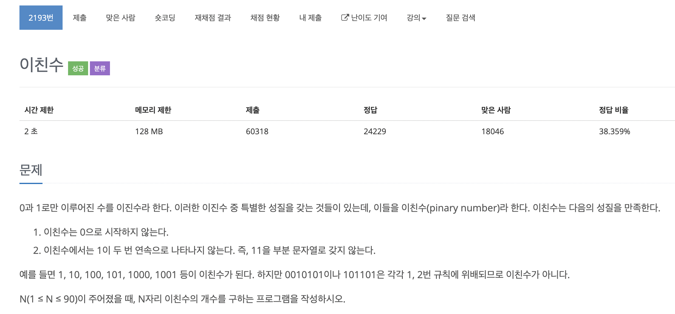 0로 끝나는 수는 [0][i-1] + [1][i-1]